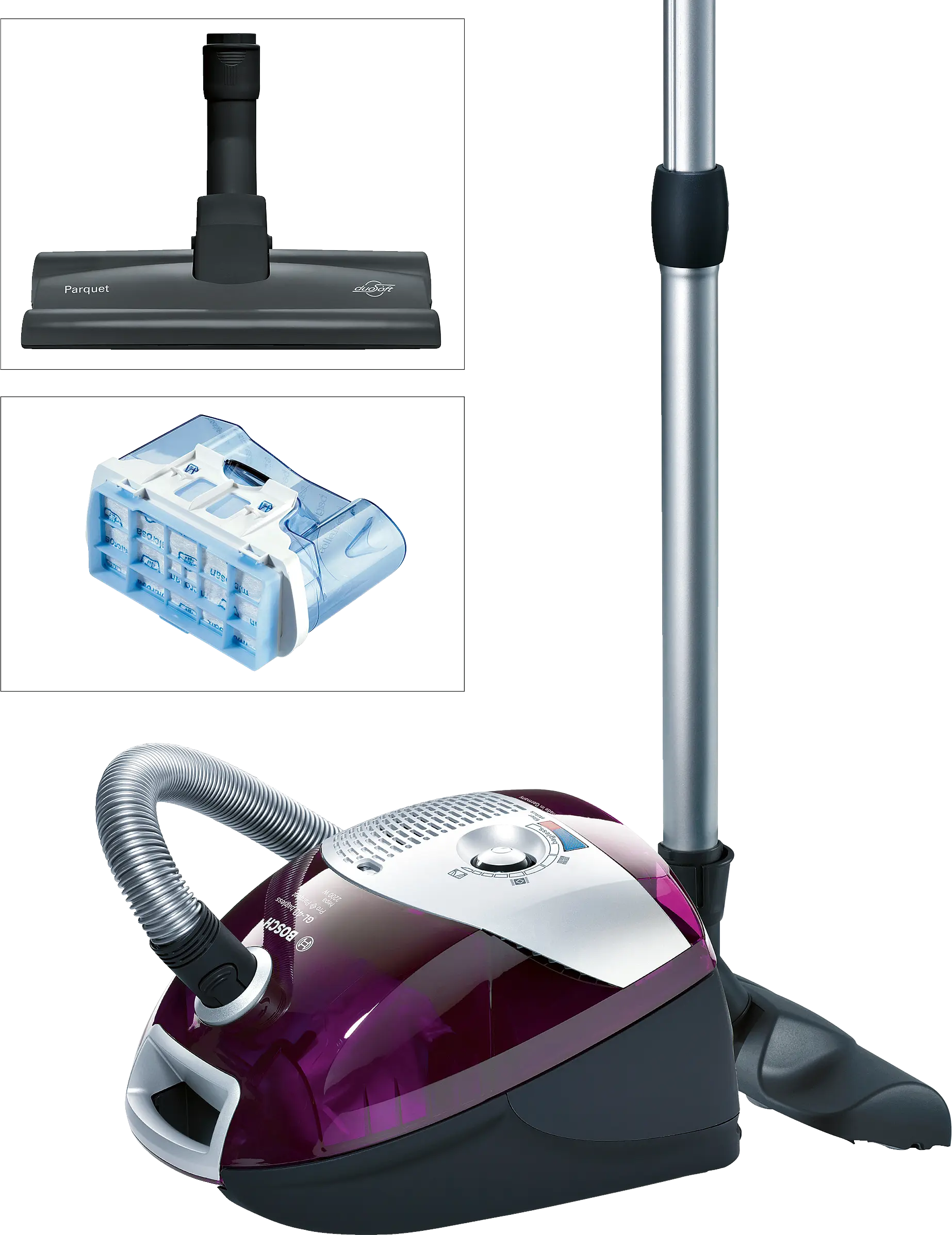 Brosse ProParquet duoSoft, innovante et brevetée, passe du parquet au tapis sans effort.