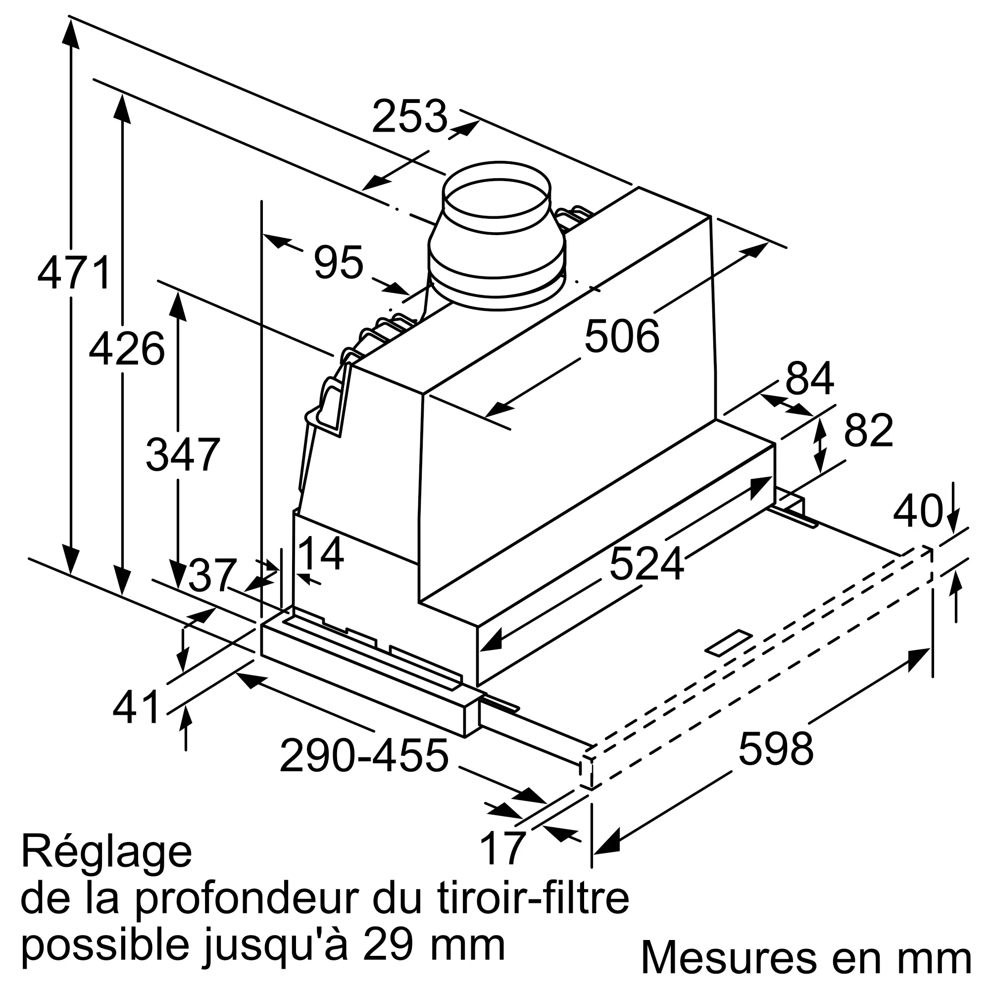 Débit d'aspiration max. en évacuation