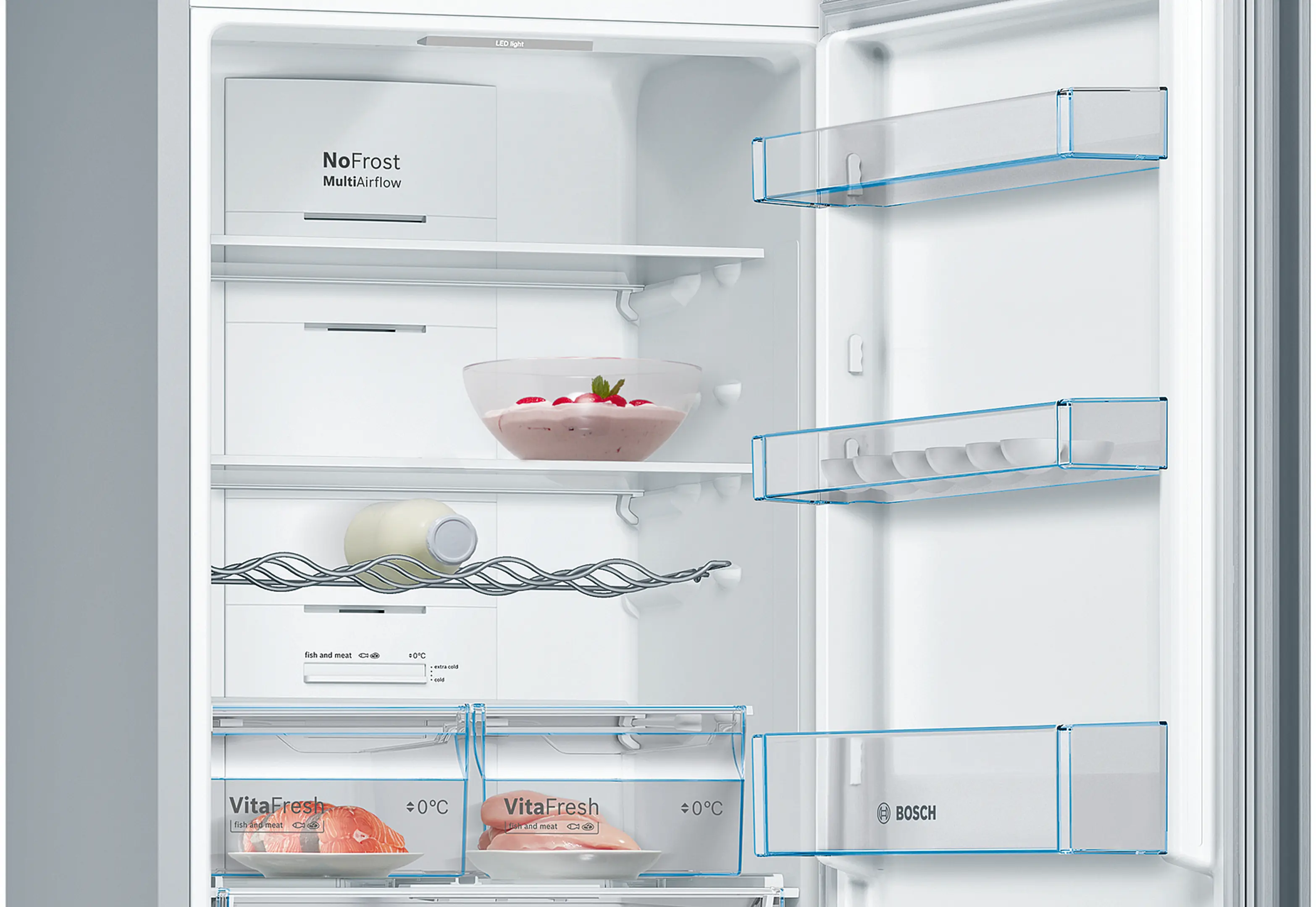 Alarme de porte ouverte : vous êtes alerté par un signal sonore si la porte de votre réfrigérateur est mal fermée ou qu'un autre problème survient.
