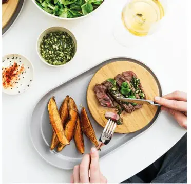 Assiette ovale avec planche à découper en bambou17001892