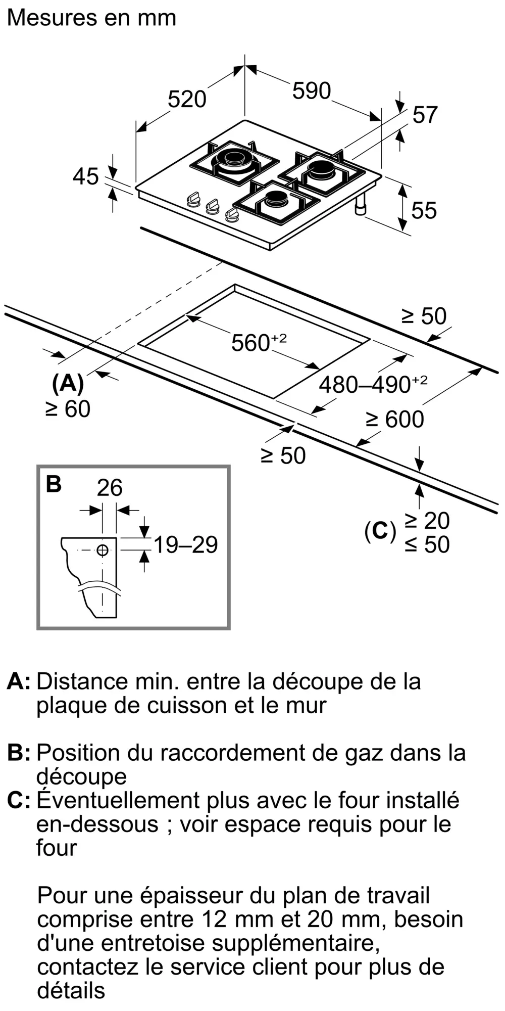 Série 4 Table gaz 60 cm Verre trempé, NoirPNC6B6K30
