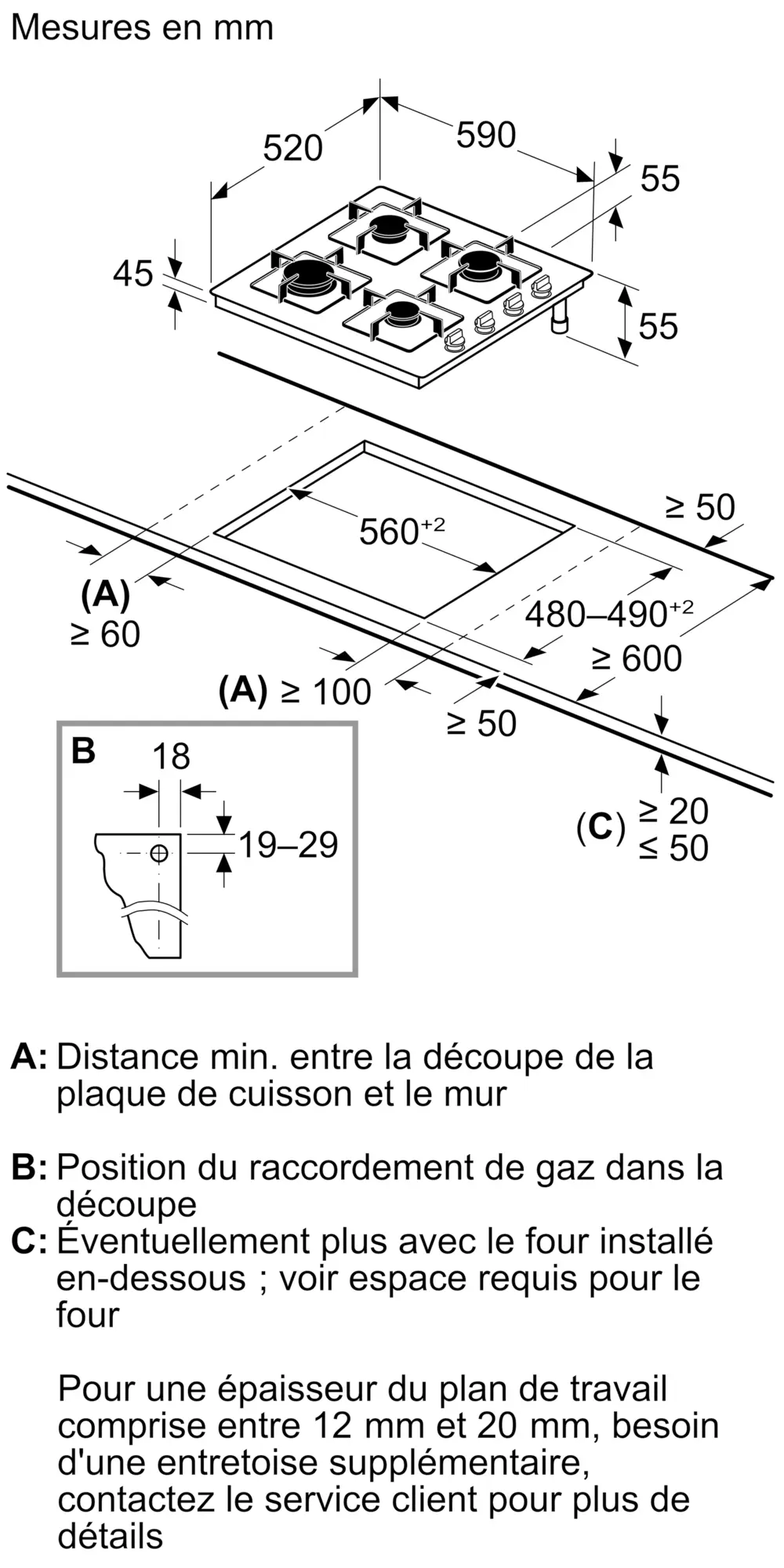Série 2 Table gaz 60 cm Verre trempé, NoirPOP6B6K30