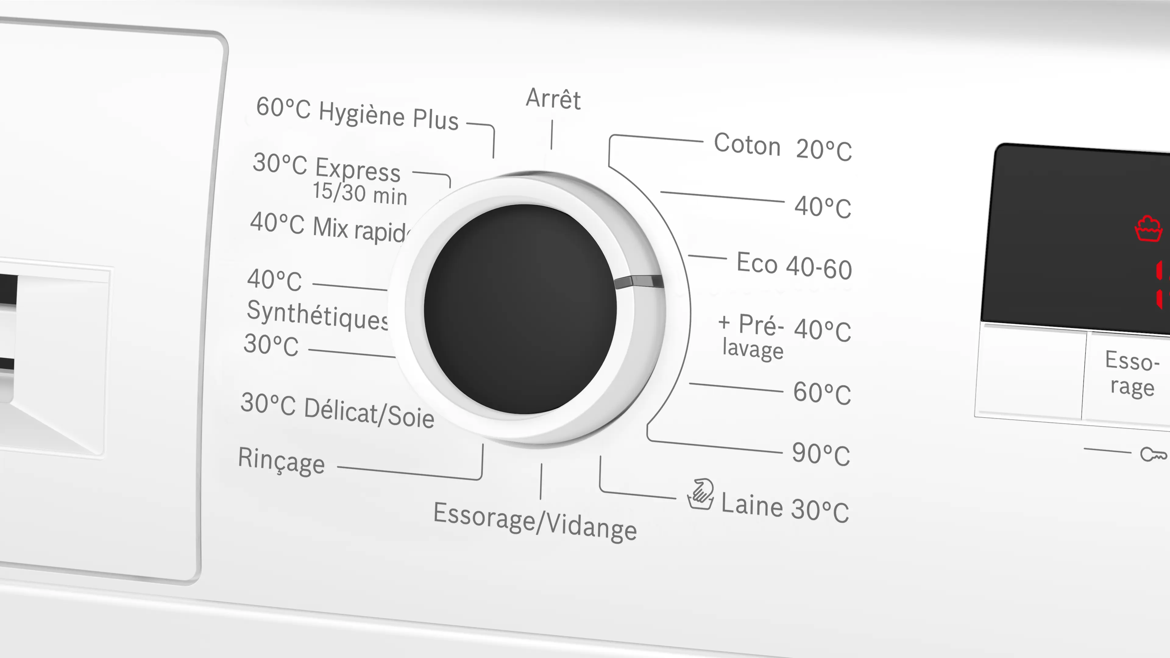 Vitesse d'essorage max.Note de bas de page 1: La vitesse d'essorage maximale est automatiquement réduite en cas de déséquilibre.: 1200 tours/min