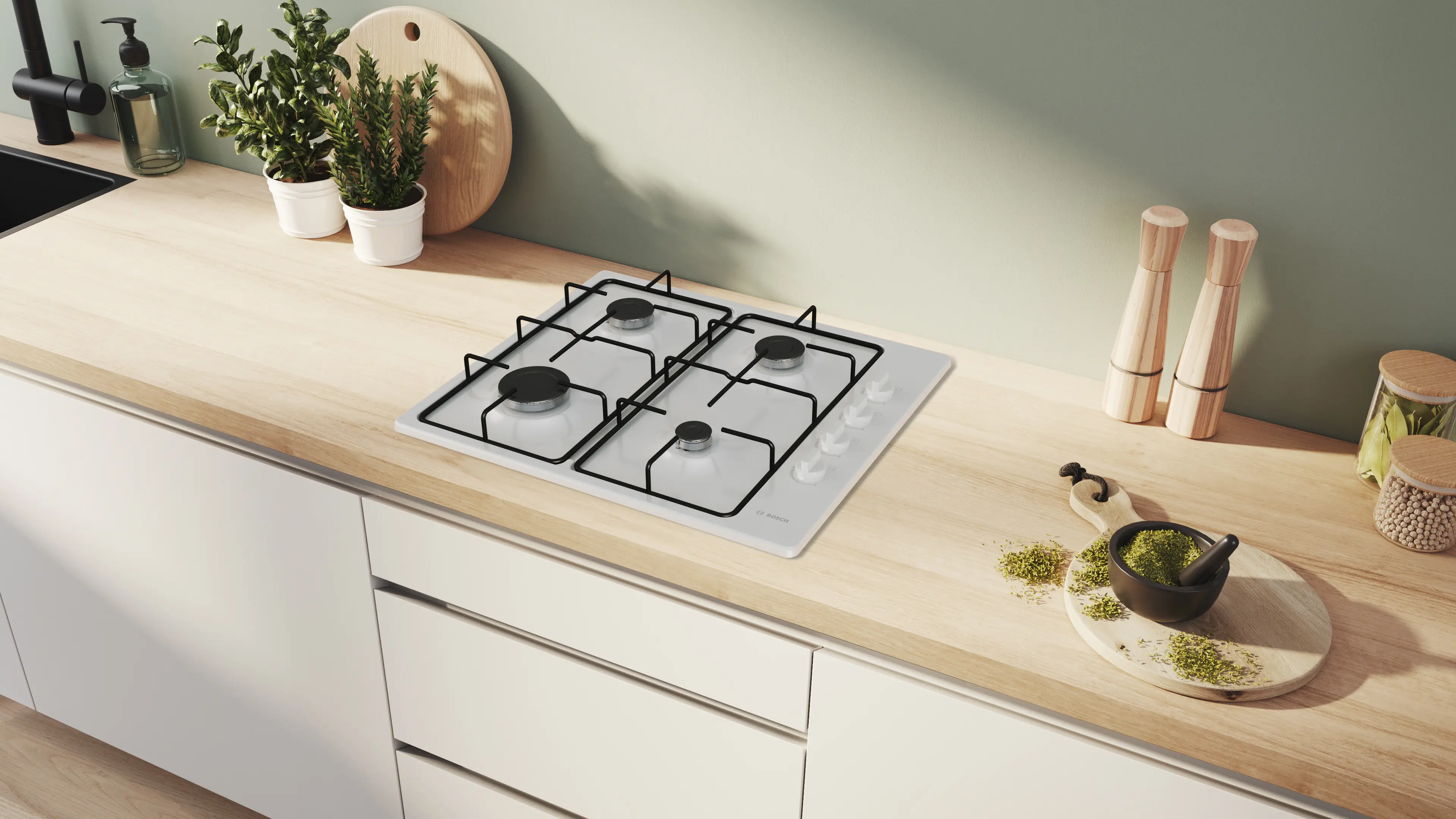 Seconde Vie : très bon état, garanti 2 ans - Série 2 Table gaz 60 cm Email, BlancPBP6B2K80-B
