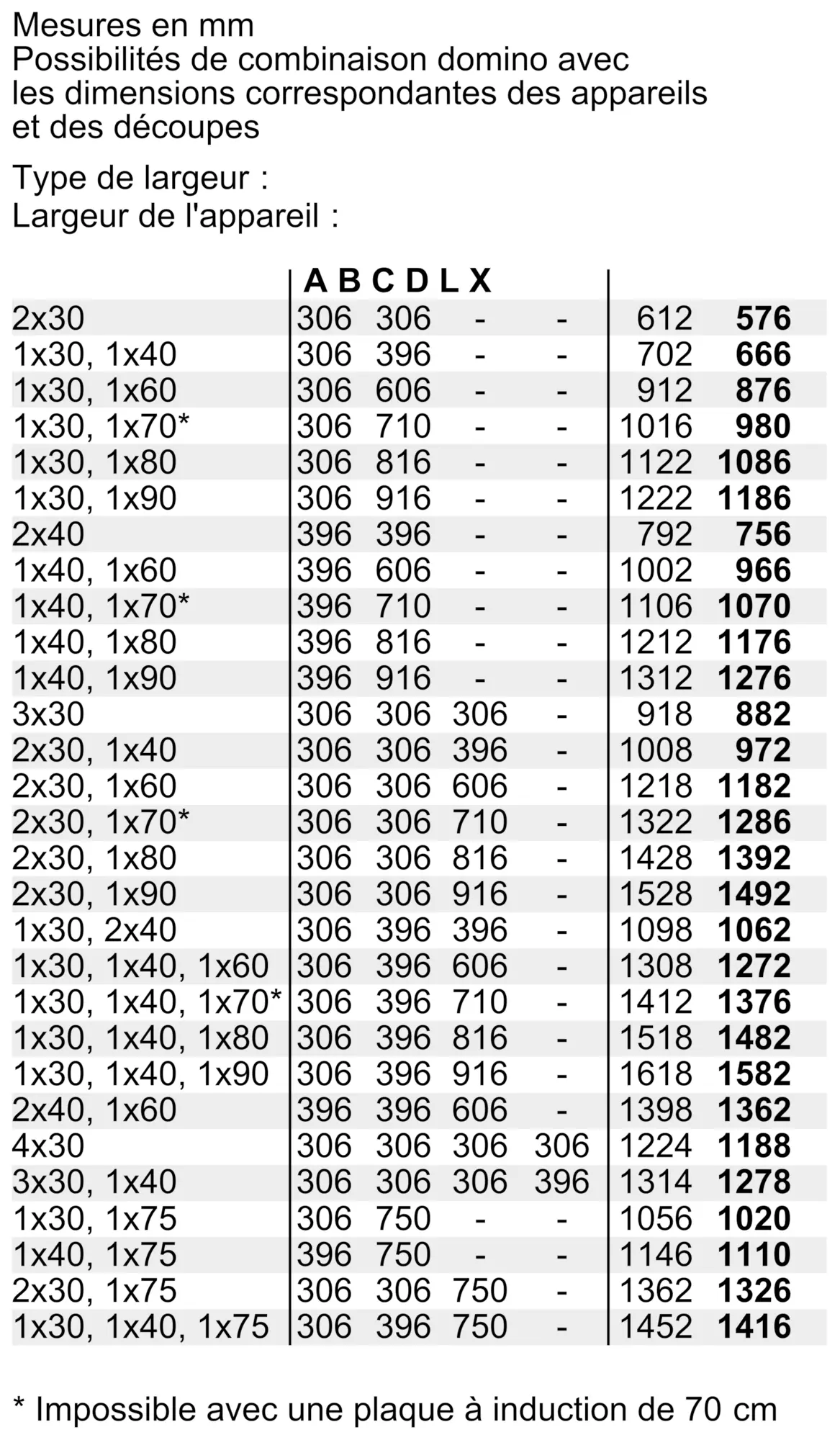 Type de tables de cuisson