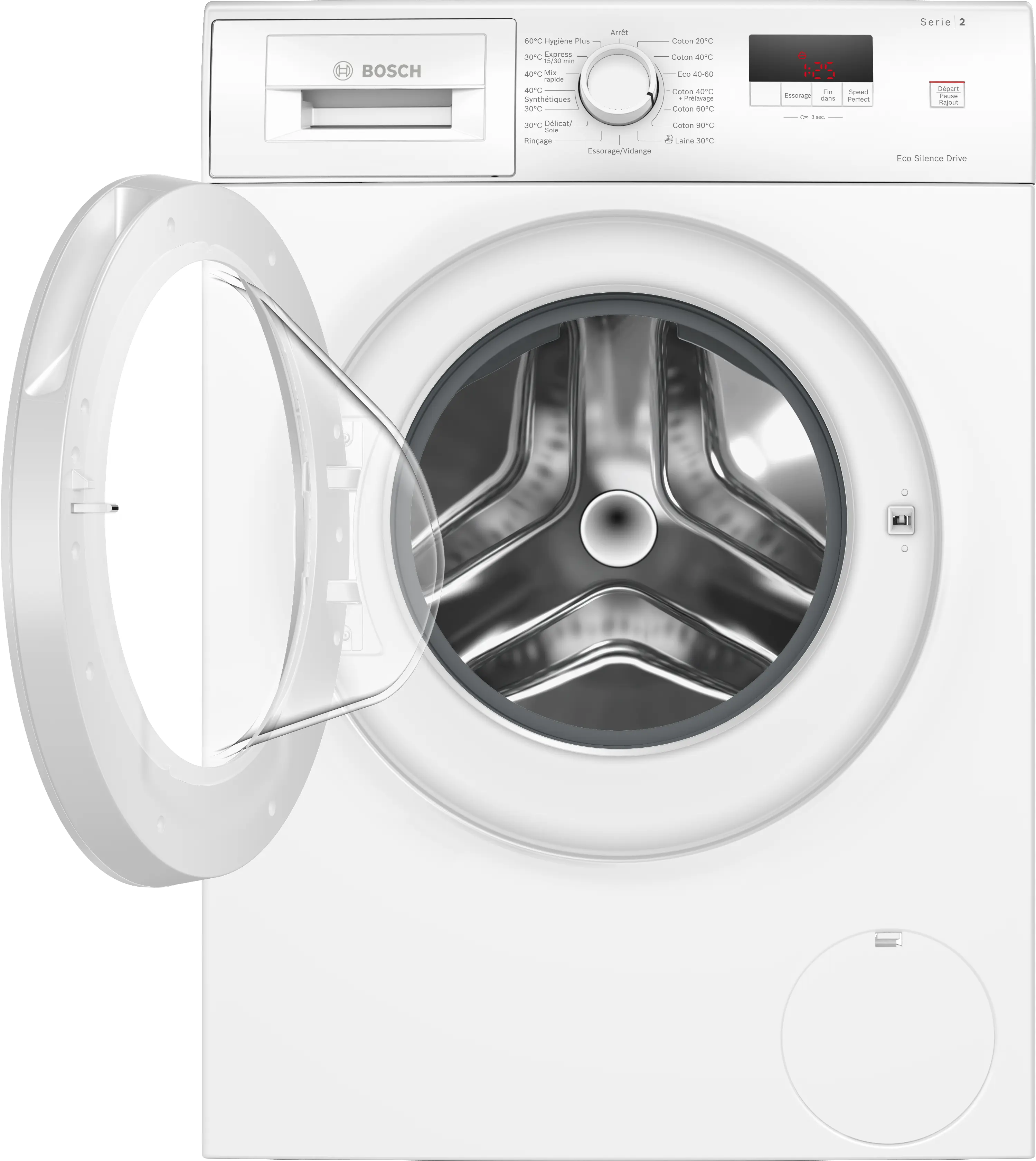 Vitesse d'essorage max.Note de bas de page 1: La vitesse d'essorage maximale est automatiquement réduite en cas de déséquilibre.: 1200 tours/min