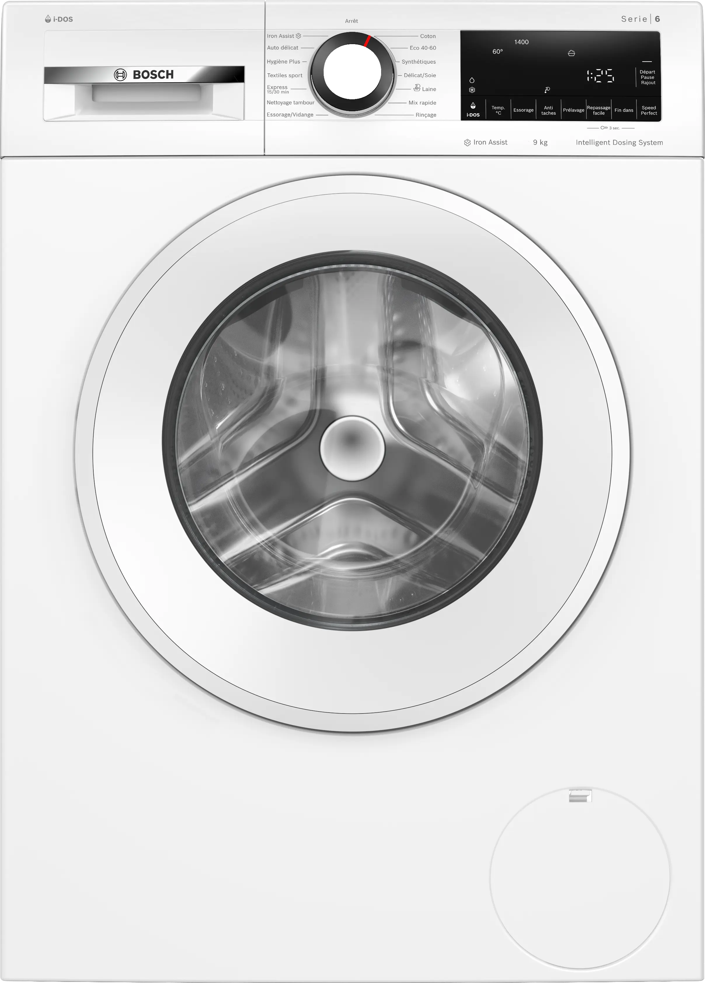 Vitesse d'essorage max.Note de bas de page 1: La vitesse d'essorage maximale est automatiquement réduite en cas de déséquilibre.: 1400 tours/min