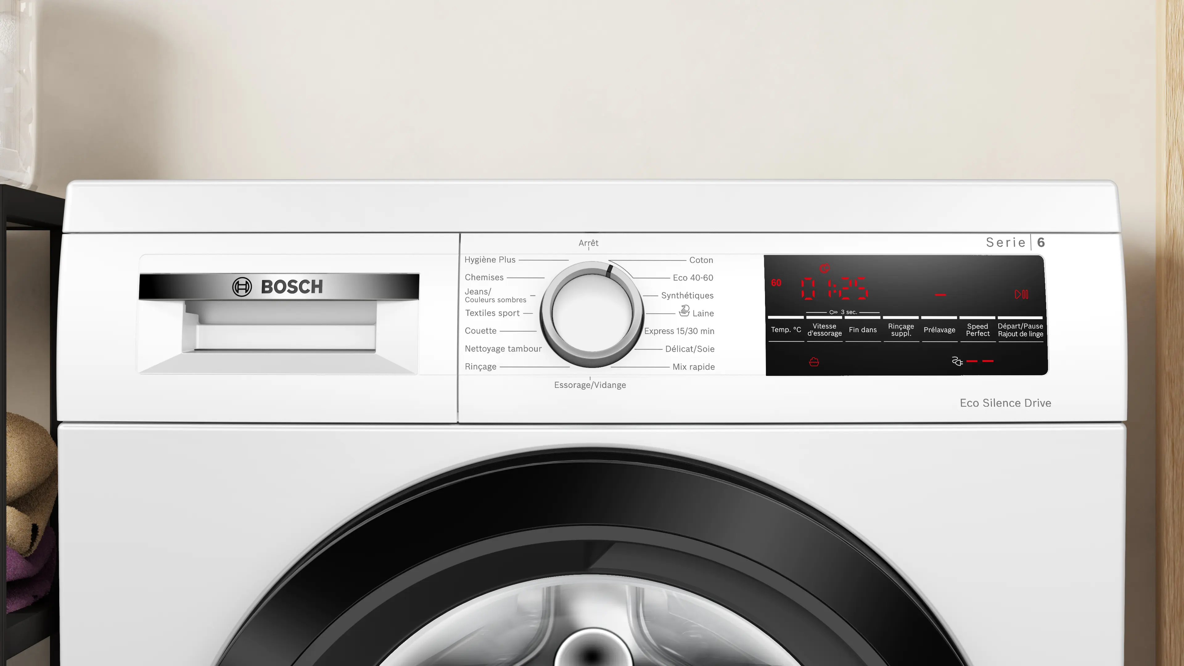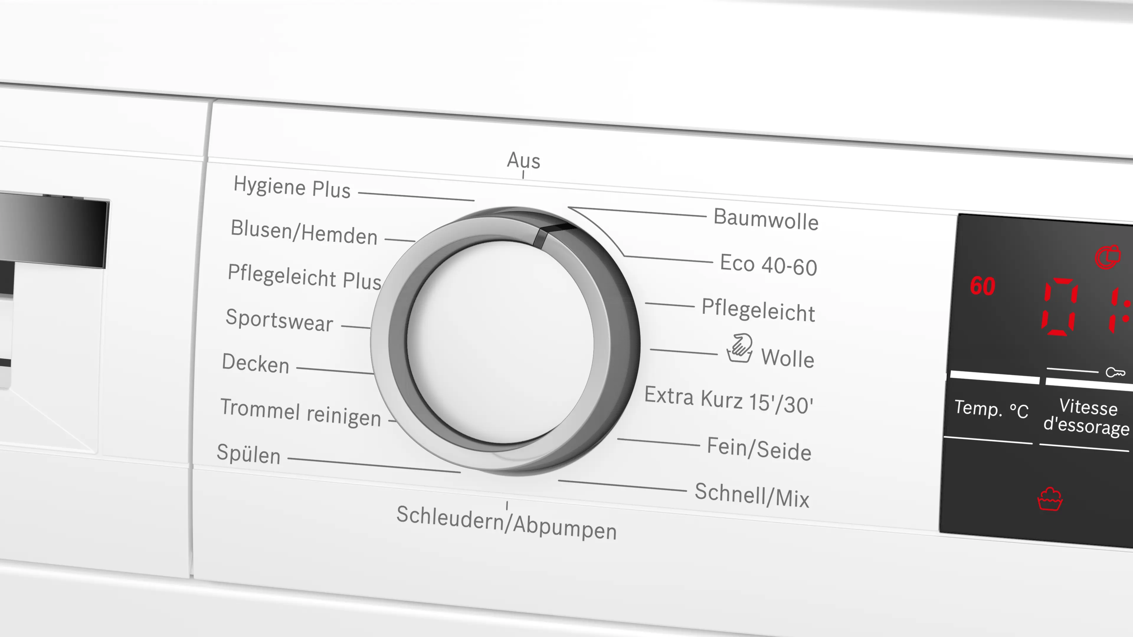 Vitesse d'essorage max.Note de bas de page 1: La vitesse d'essorage maximale est automatiquement réduite en cas de déséquilibre.: 1400 tours/min
