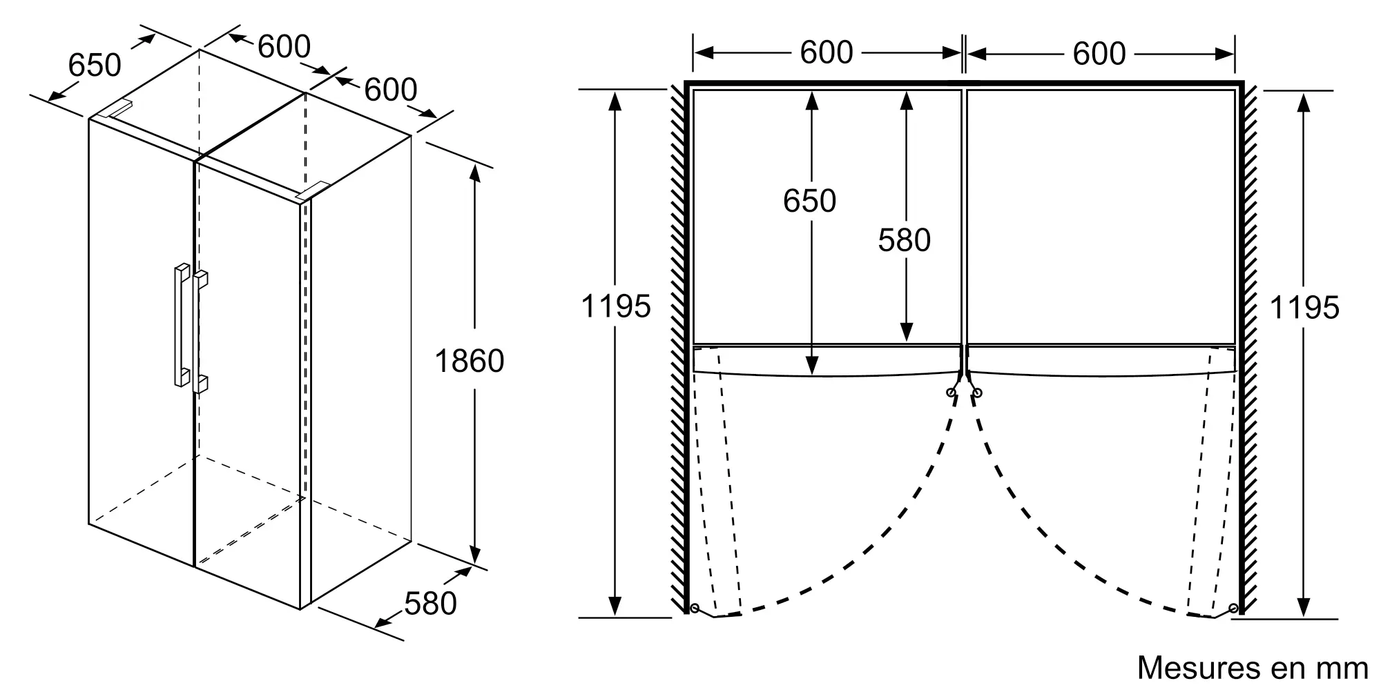1860x600x650 mm